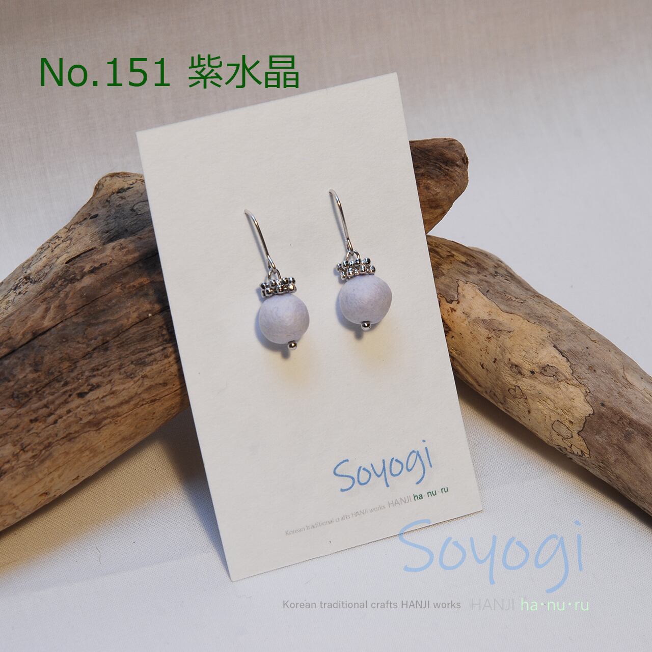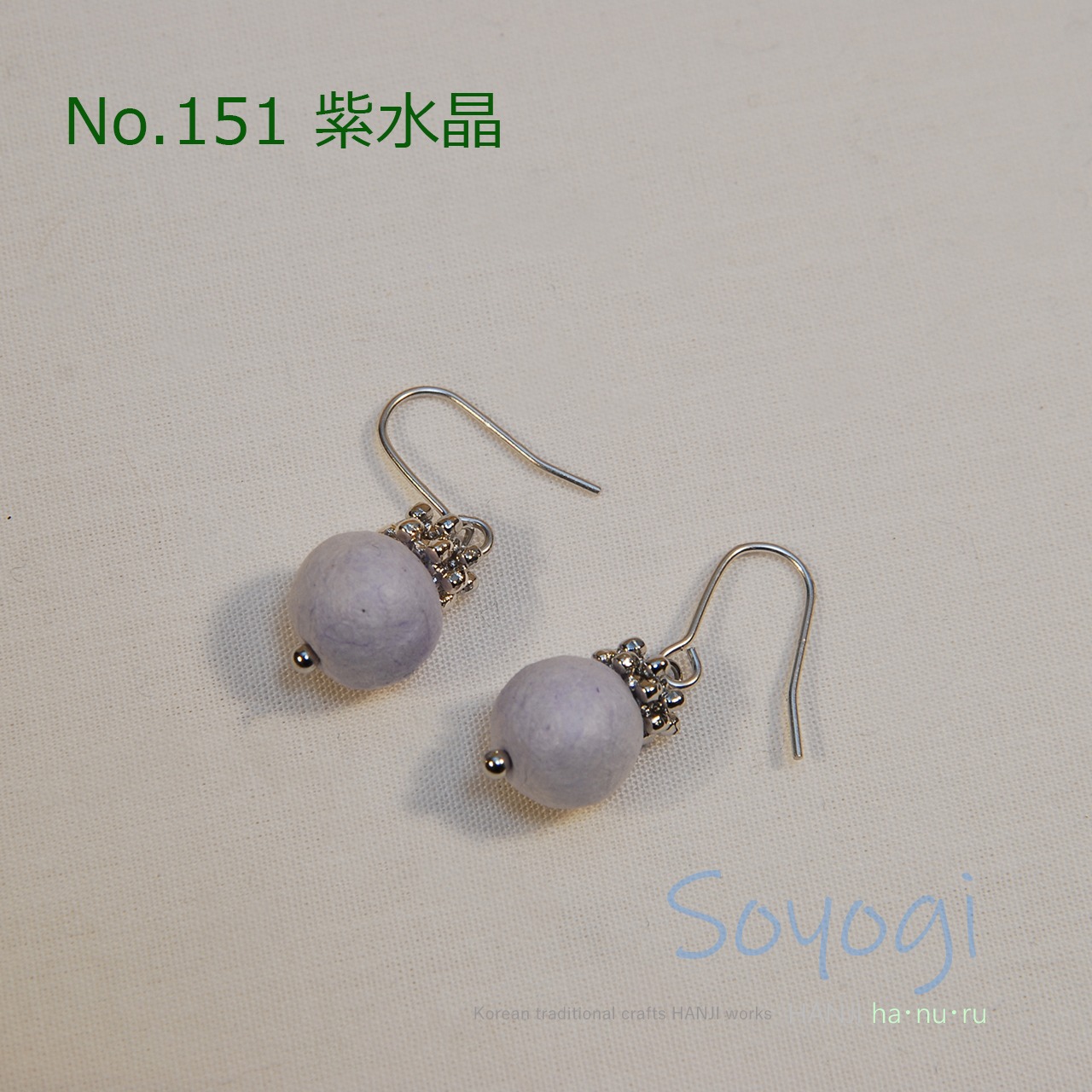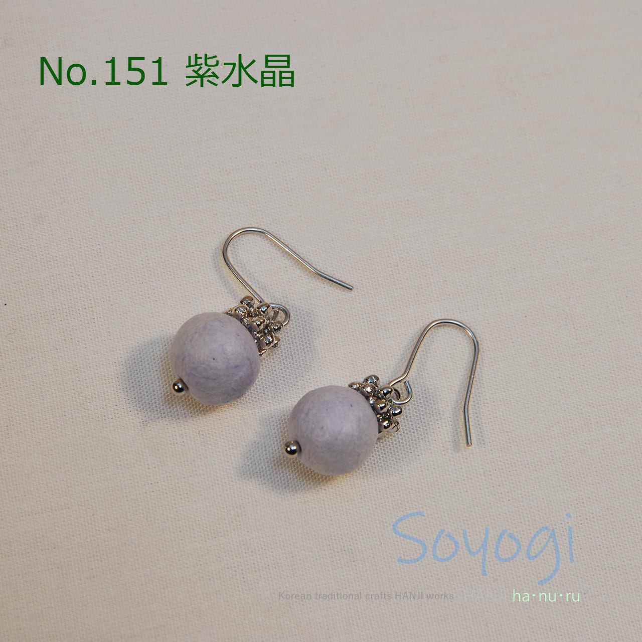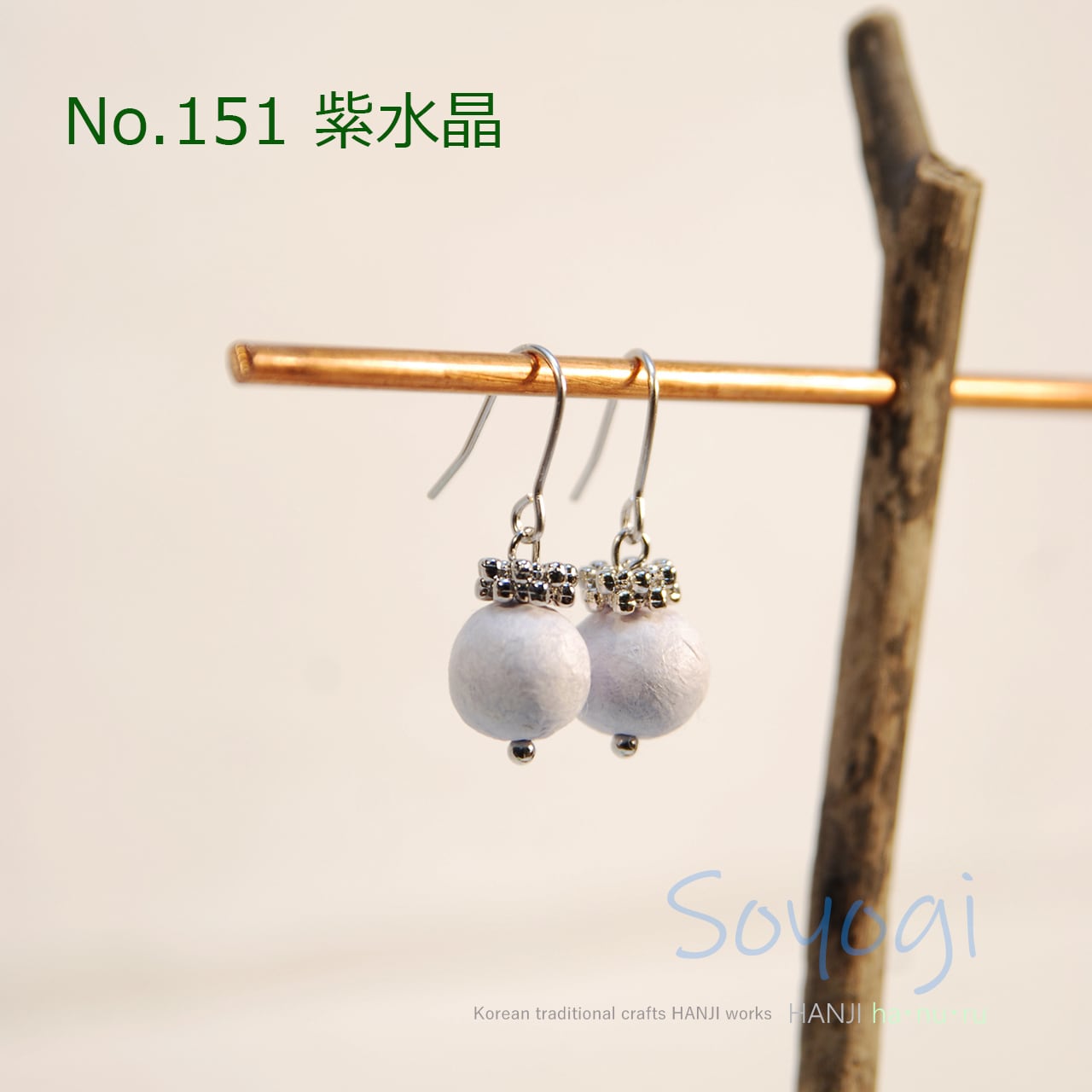 No.151 紫水晶 ... 透明感のある淡い紫、紫水晶(むらさきすいしょう)と銀色(ニッケルメッキ)の金具の組み合わせです。