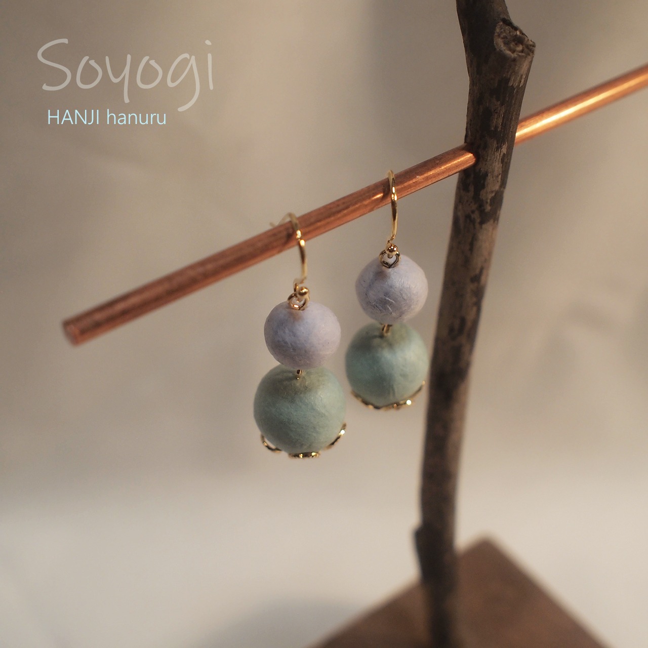 クールな薄い色合い、白磁(はくじ)と藍白(あいじろ)の配色のピアスです。